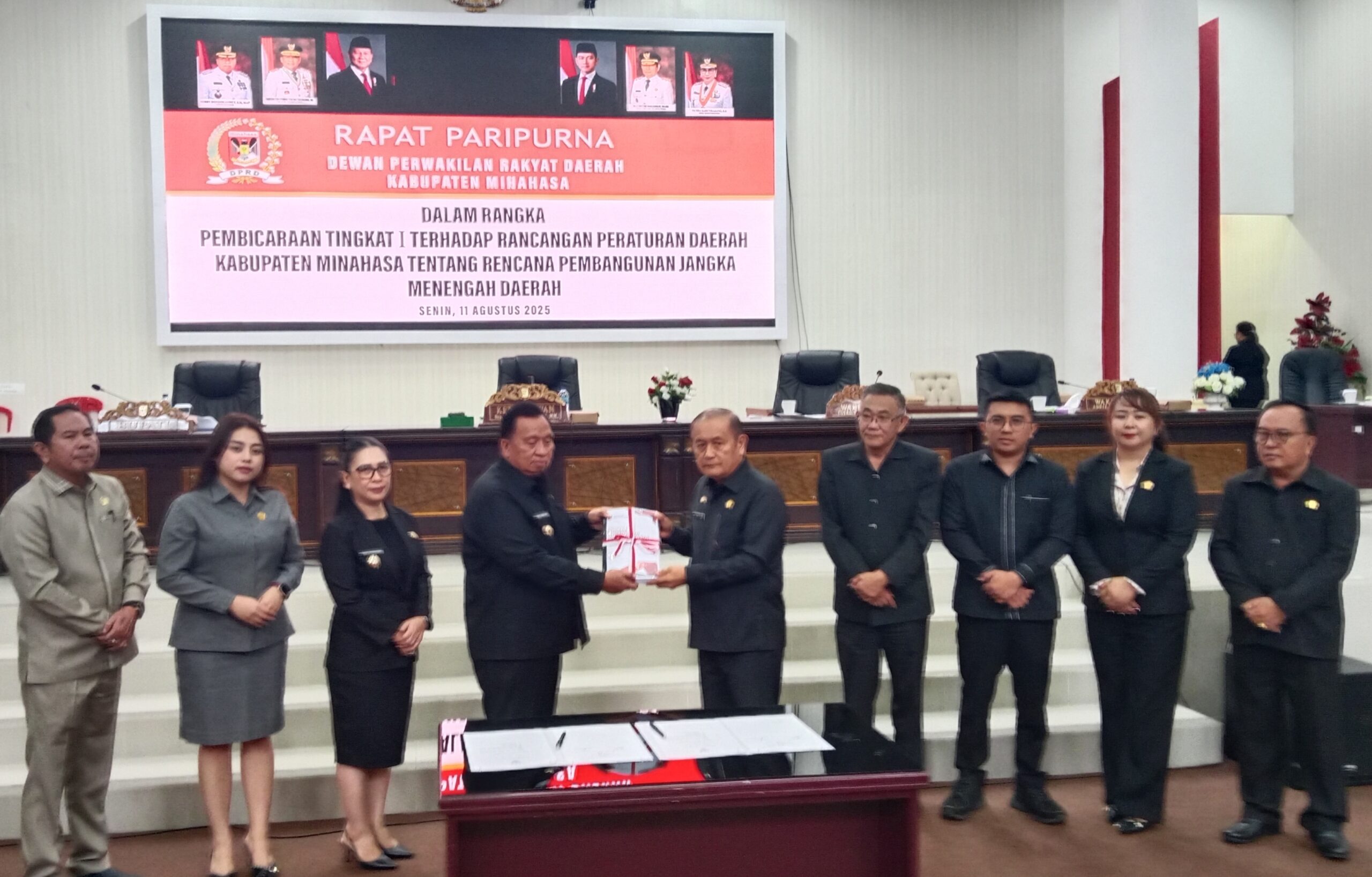 Ketua DPRD Minahasa Drs Robby Longkutoy membuka secara resmi Rapat Paripurna DPRD Minahasa, dalam rangka pembicaraan tingkat I, Terhadap rancangan peraturan daerah kabupaten Minahasa tentang Rencana pembangunan jangka menengah Daerah, Bertempat di Gedung DPRD Minahasa, Tondano, Senin (11/8/2025).