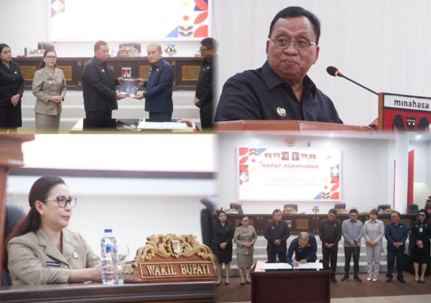 – Bupati Minahasa Robby Dondokambey dan Wakil Bupati Minahasa Vanda Sarundajang menghadiri Rapat Paripurna Dewan Perwakilan Rakyat Daerah (DPRD) Kabupaten Minahasa yang dipimpin oleh Ketua DPRD Minahasa Robby Longkutoy, Bertempat di Gedung DPRD Minahasa, Tondano, Selasa (15/4/25).