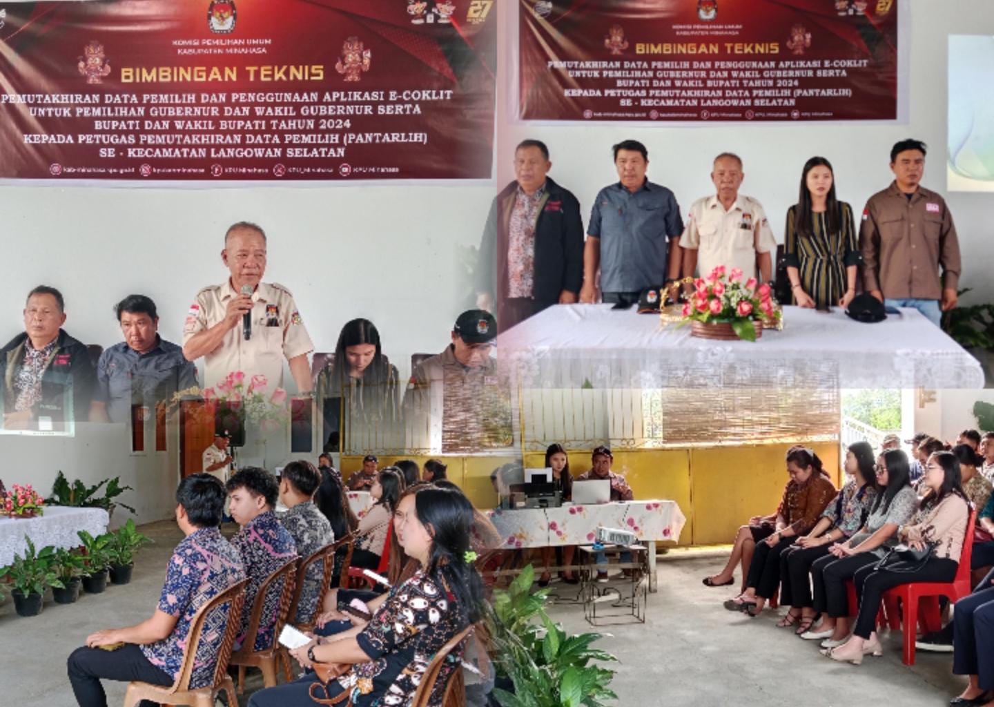 MINAHASA, proexposnews.com-Komisi Pemilihan umum Kabupaten Minahasa melalui Panitia Pemilihan Kecamatan (PPK), kecamatan Langowan Selatan mengelar Bimbingan teknis Pemuktahiran Data Pemilih dan Penggunaan Aplikasi E-Coklit untuk Pemilihan Gubernur dan Wakil Gubernur serta Bupati dan Wakil bupati Tahun 2024, Kepada Petugas Pemuktahiran Data Pemilih (Pantarlih) Se-Kecamatan Langowan Selatan.