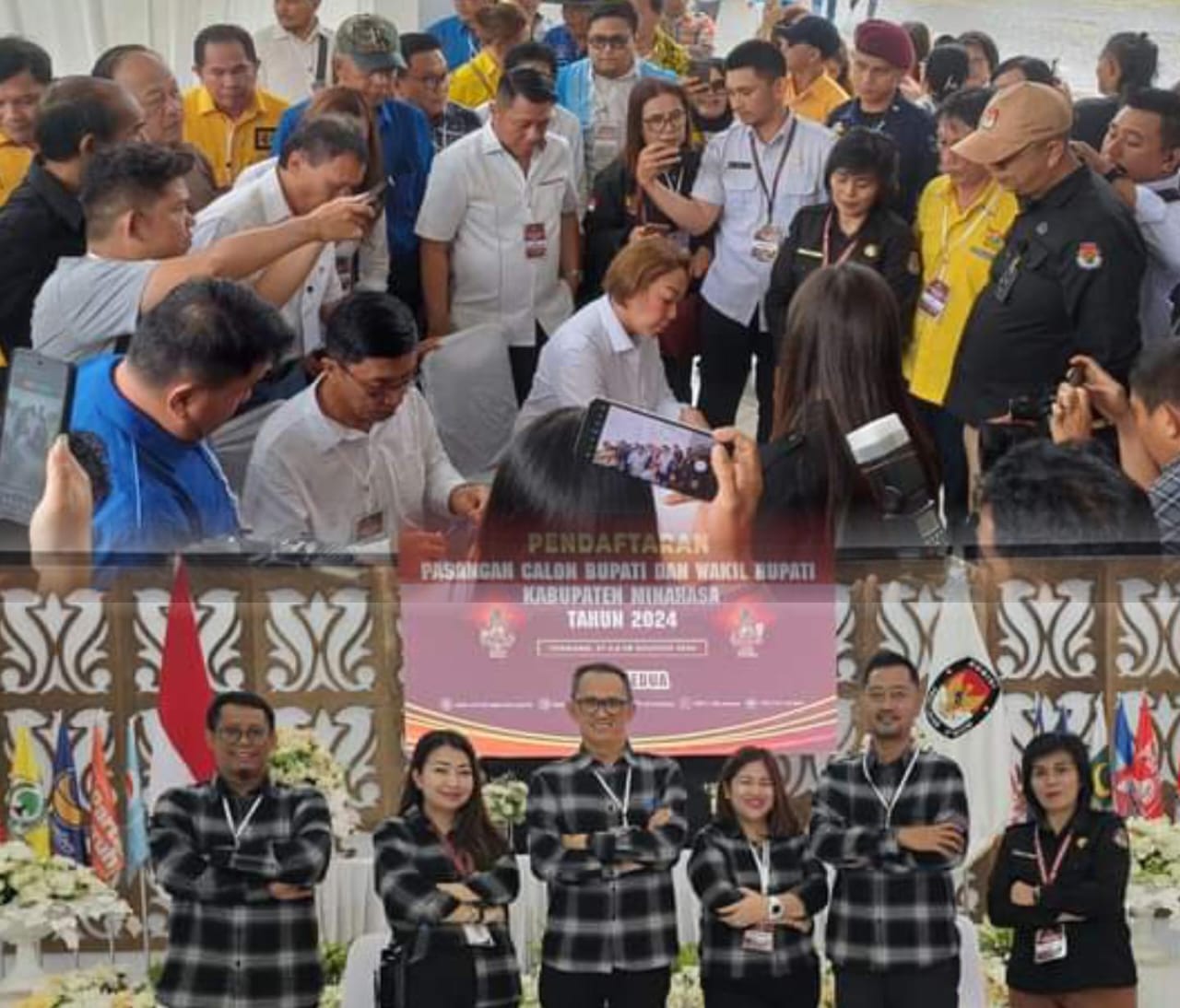 Dengan mengusung tagline “Minahasa Keter,” YLM-DRK tiba di KPU Minahasa pada pukul 14.00 WITA dan disambut hangat oleh Sekretaris KPU Minahasa, Stella S. Sompe. Kedatangan pasangan ini menambah semarak suasana pendaftaran calon yang telah dimulai sehari sebelumnya.