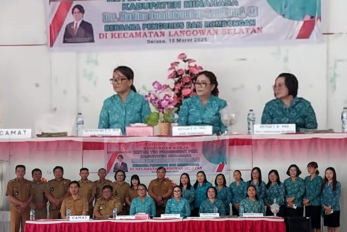–Ketua TP-PKK Kabupaten Minahasa, Ny. Martina Dondokambey-Lengkong, SE, bersama jajaran pengurus TP-PKK Kabupaten Minahasa, melakukan kunjungan kerja di Kecamatan Langowan Selatan. Kegiatan ini berlangsung di Balai Desa Winebetan, pada Selasa (18/3/25).
