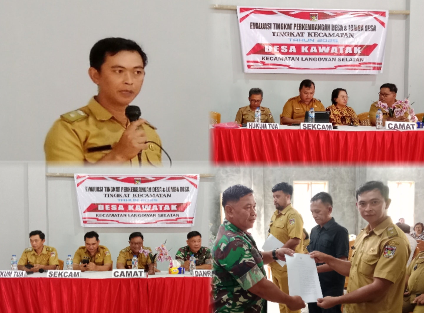 “Saya mengapresiasi, masyarakat desa, bersama Tim penilai dari kecamatan atas digelarnya kegiatan ini, dimana dengan digelarnya kegiatan ini, kami pemerintah Desa bisa mengetahui sejauh mana perkembangan yang ada di desa Kawatak, baik itu masalah kebersihan lingkungan, begitu juga dengan masalah administrasi yang ada di desa dan administrasi yang dikelola oleh Bumdes,” Terang Kumtua saat didampingi Ketua PKK desa.