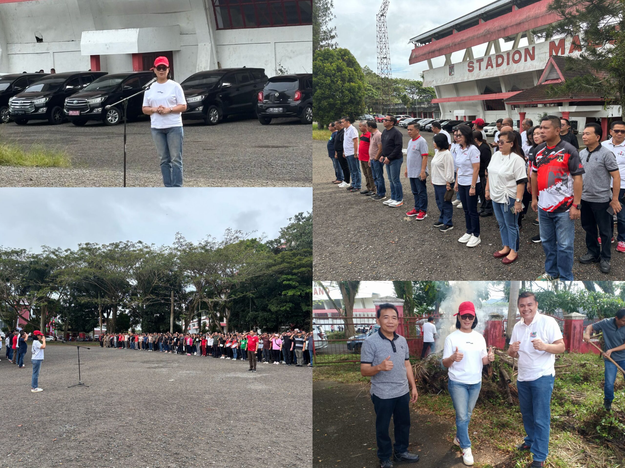 — Sekretaris Daerah Kabupaten Minahasa, Dr. Lynda D. Watania, MM, MSi, memimpin apel kerja yang dirangkaikan dengan kerja bakti di Stadion Maesa Tondano, Jumat (28/2/25).