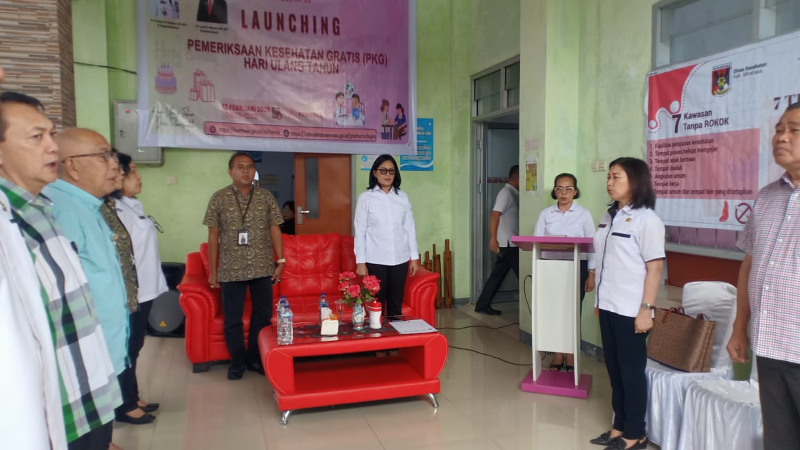 Dalam laporannya, Kepala Dinas Kesehatan dr. Olvianne Imelda Rattu M,Si mengatakan maksud dan tujuan kegiatan program pemeriksaan kesehatan gratis hari ulang tahun dari pemerintah atau PKG, program ini merupakan salah satu program prioritas nasional dari Asta cita dari bapak Presiden Prabowo dan wakil presiden Gibran Rakabuming Raka, dimana semua masyarakat Indonesia akan dilayani dengan pemeriksaan kesehatan gratis tepatnya di hari ulang tahun dan launching secara nasional.