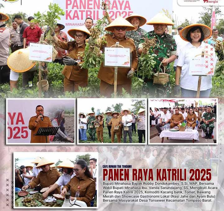 – Hari ini, Bupati Minahasa Robby Dondokambey bersama Wakil Bupati Vanda Sarundajang mengikuti Panen Raya Katrili di Perkebunan Tonsewer, Kecamatan Tompaso Barat, Senin (26/5/2025).