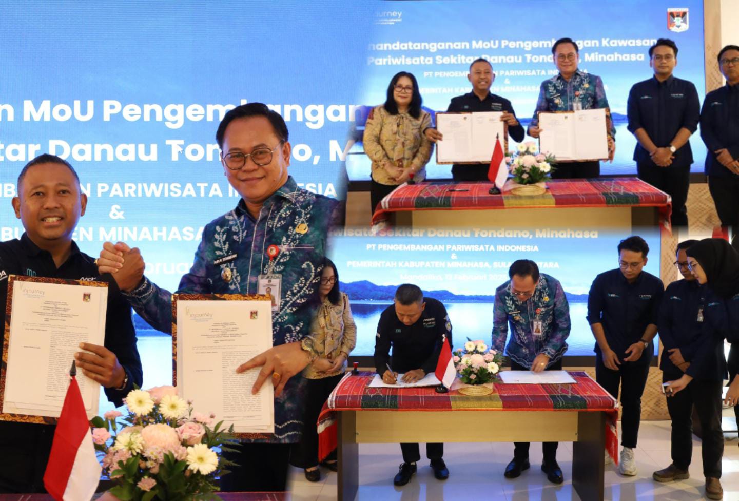 Penjabat Bupati Minahasa Dr. Noudy R. P. Tendean, S.IP, M.SI, melakukan Penandatangan MOU Pengembangan Kawasan Pariwisata Sekitar Danau Tondano antara Pemkab Minahasa dengan Injourney Tourism Development Cooperation (ITDC), bertempat di ITDC Office Mandalika Nusa Tenggara Barat. Rabu (12/2/2025).